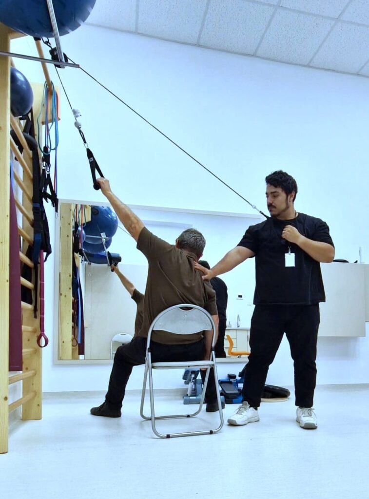 Exerciții fizice adaptate, Întinderi și tonifiere, Exerciții de respirație, Mișcări asistate de terapeut, Folosirea de benzi elastice, mingi sau alte echipamente